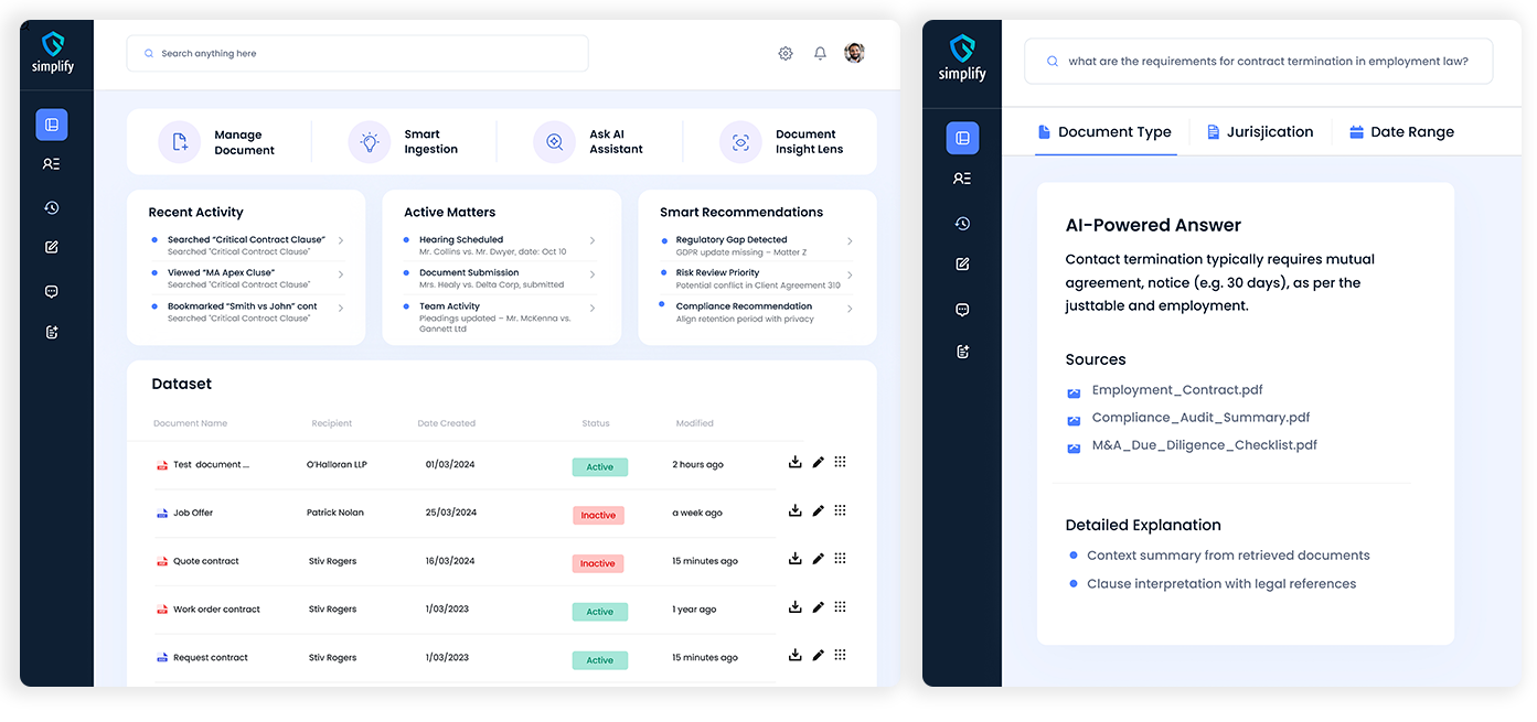 Despite the growing adoption of AI in almost every industry, specialized AI software for law firms remains scarce. The core challenge for our client was the manual effort required to interpret and retain detailed documents. The process was time-intensive, mentally demanding, prone to oversight, and demanded high memory capacity.