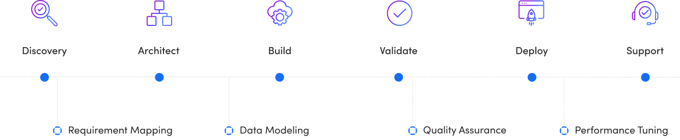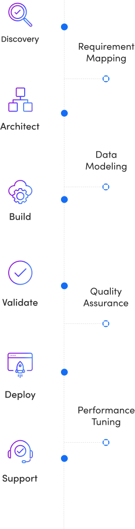 Our data warehouse consultants manage the full setup of a cloud data warehouse by configuring environments, onboarding datasets, and establishing ingestion frameworks. Our process produces a stable warehouse foundation that supports analytics teams without technical debt.