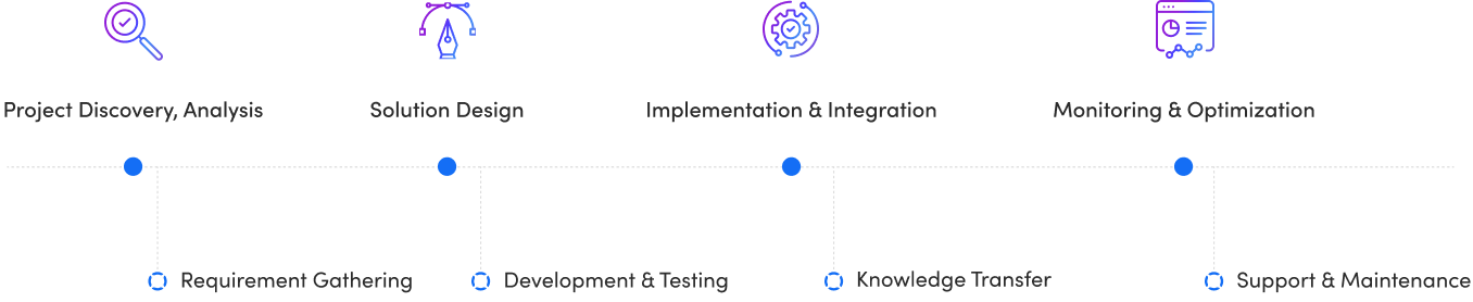 Our RPA team goes above and beyond deployment when it comes to managing RPA lifecycles. We implement continuous oversight and robust security with stringent protocols to safeguard sensitive data and adhere to compliance protocols across all stages of automation.